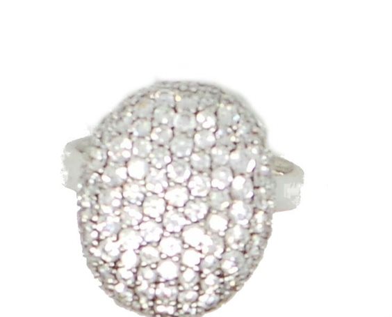ANELLO COLLEZIONE BRILLANCE A PAVE' OVALE DI ZIRCONI BIANCHI MM 19 X 16 , PESO GRAMMI 7,5. GAMBO TONDO COMFORT MM 3,60. MISURA DEL DITO 19