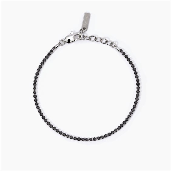 Bracciale tennis in acciaio 316L con cristalli neri Ø 2 mm, lunghezza regolabile da 18 a 20.5 cm