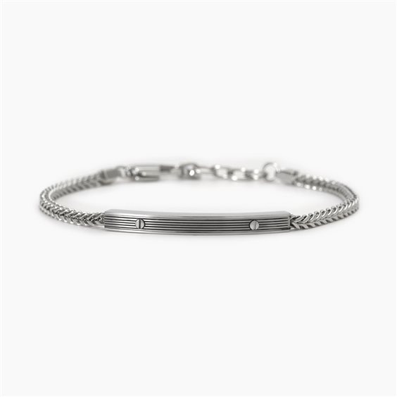 Bracciale in acciaio 316L con catena franco 2.5 mm e piastra 40x2.5 mm, lunghezza regolabile da 19 a 21 cm