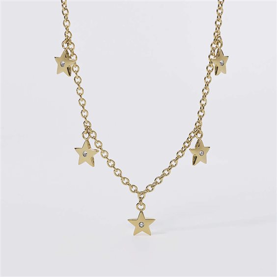Collana Da Donna Di 2Jewels Della Collezione Lady Ikon. Girocollo In Acciaio 316L Con Catena Rolò Larghezza 2.50 Mm, Pvd Gold, Ciondoli Stella 9X10.30 Mm E Cristalli Bianchi Ø 1.50 Mm. Lunghezza Regolabile Da 38 A 43 Cm
