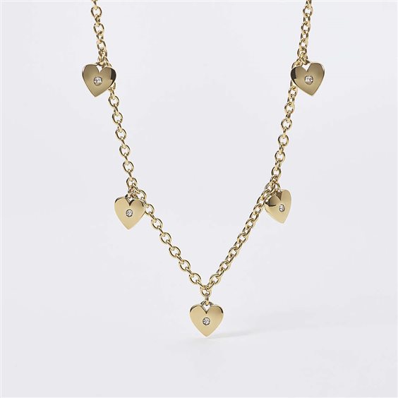 Collana Da Donna Di 2Jewels Della Collezione Lady Ikon. Girocollo In Acciaio 316L Con Catena Rolò Larghezza 2.50 Mm, Pvd Gold, Ciondoli Cuore 7.45X8.15 Mm Con Cristalli Bianchi Ø 1.50 Mm. Lunghezza Regolabile Da 38 A 43 Cm.