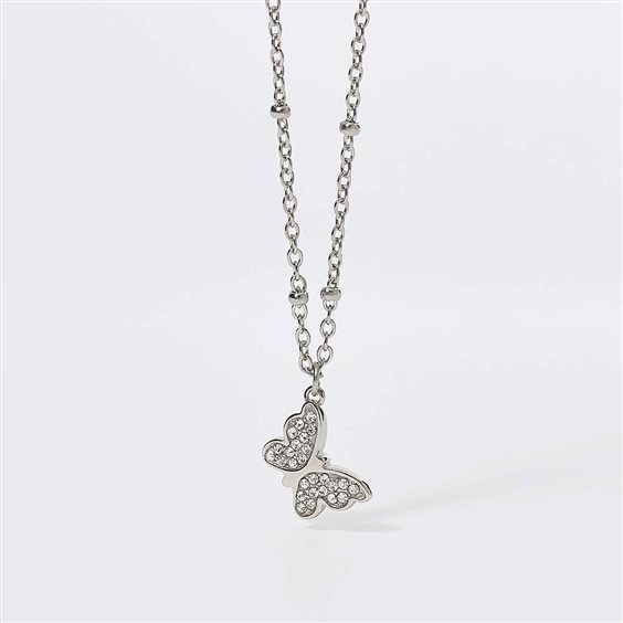 Collana Da Donna Di 2Jewels Della Collezione Lady Ikon. Girocollo In Acciaio 316L Con Sfere Ø 1.95 Mm, Ciondolo Farfalla 15X10.50 Mm E Cristalli Bianchi Ø 1.25 Mm. Lunghezza Regolabile Da 38 A 43 Cm