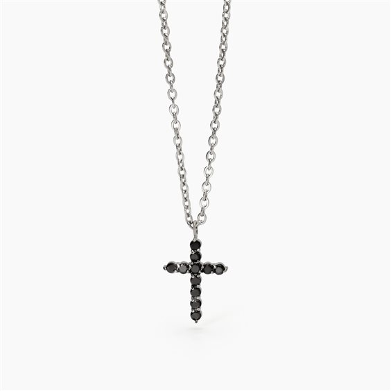 Collana in acciaio 316L con catena forzatina 2 mm, pendente croce 20x15 mm con zirconi neri Ø 2.5 mm, lunghezza 50 cm