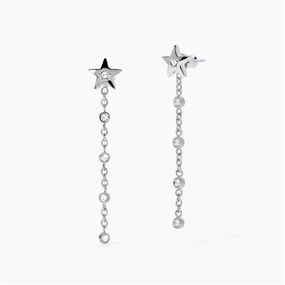 Orecchini in acciaio 316L a forma di stella con cristalli bianchi Ø 1.50 mm. Lunghezza totale orecchini 4,4 cm
