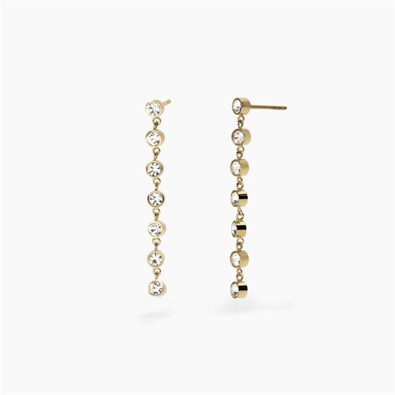 Orecchini in acciaio 316L in PVD giallo con cristalli bianchi Ø 3 mm, lunghezza totale orecchino 4.5 cm
