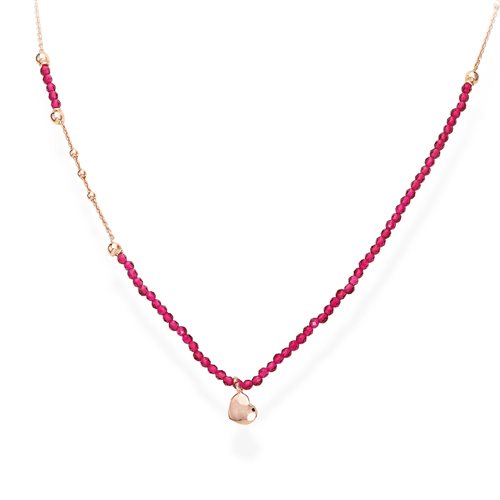 Collana Cuore Rosè e Pepite Rubino -Collana in Argento 925 e cristalli rubino - Lunghezza 40+4cm
