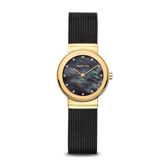 Classico, purista, eppure eccitante. Stile perfetto combinato al minimalismo contemporaneo. Ispirata al design danese, la COLLEZIONE CLASSIC presenta un orologio unico, creato per dare un tocco di stile al look quotidiano. La cassa in acciaio inox (316L), laminata oro giallo, insieme al moderno cinturino in maglia Milanese black, realizzano il classico look BERING. Il quadrante in madreperla, impreziosito da elementi Swarovski, è protetto da un vetro zaffiro antigraffio. Garanzia 3 anni.