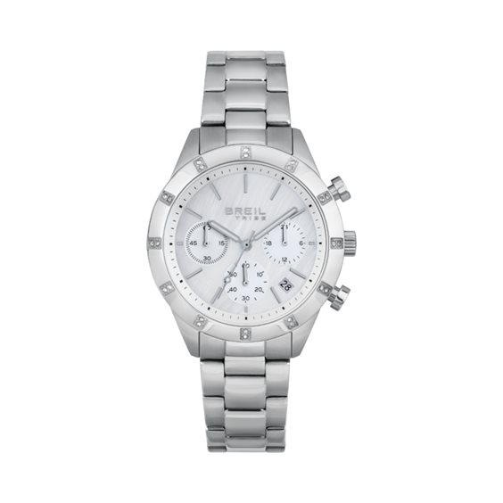 Il cronografo da donna Dazzle non passa certo inosservato! Dimensioni oversize e scelte stilistiche decisamente sopra le righe: perfetto per la donna che vuole farsi notare. Nella versione silver, l’acciaio lucido è reso super glam dai cristalli incastonati sulla lunetta e dal quadrante in madreperla.