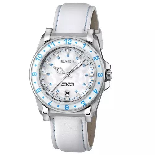 Cassa in acciaio 37,5 mm. • Lunetta con inserto in vetro • Quadrante in madreperla bianca. • Datario. • Sfere con luminous. • W.R. 10 atm. • Cinturino in pelle bianca • Chiusura ad ardiglione no scatola/garanzia Breil.