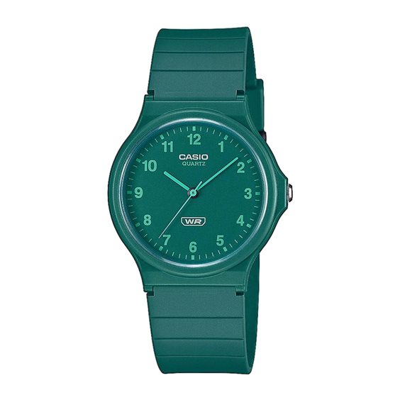 Il modello MQ-24 che ha riscosso tanto successo è tornato, ora realizzato con materiali più rispettosi dell'ambiente. Il design delle lancette delle ore, dei minuti e dei secondi è caratterizzato da numeri indicatori semplici in una linea di diverse combinazioni di colori monocromatici, tutti lucidati per un look sottile e minimalista. Il cinturino è realizzato con resina a base biologica, un materiale ideato per contribuire a ridurre l'impatto ambientale.