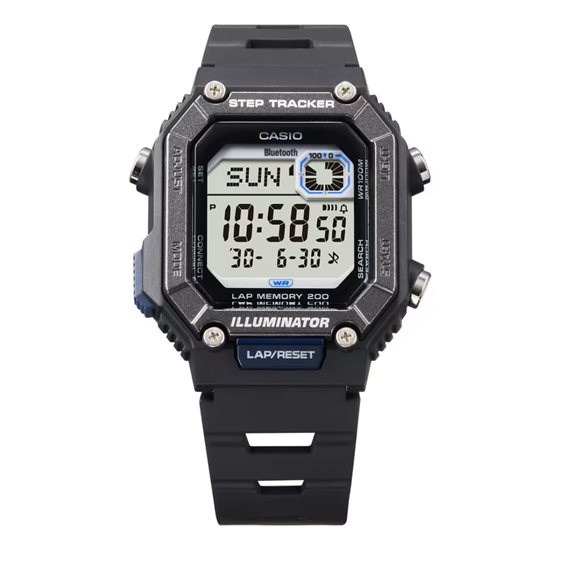 Design semplice con funzionalità che facilitano la vita quotidiana. Indossa un orologio digitale compatto e dalle linee pulite con collegamento Bluetooth®, il compagno ideale per la quotidianità, l'esercizio fisico e il benessere. Il modello WS-B1000 vanta un cronometro a centesimi di secondo, con memoria fino a 200 giri e contapassi, che aiutano a monitorare la forma fisica durante la giornata. L'accelerometro integrato rileva i movimenti del corpo e conta automaticamente i passi. Oltre a visualizzare sul display LCD il numero di passi effettuati in un giorno, l'orologio mostra un grafico che indica i progressi fatti per raggiungere gli obiettivi di allenamento. Questo orologio supporta al meglio il tuo stile di vita attivo. L'associazione degli smartphone tramite Bluetooth® consente la correzione automatica dell'ora e semplifica la configurazione del promemoria sonoro, dell'ora internazionale e di altre funzioni dall'app. I conteggi dei passi e i tempi cronometrici misurati sull'orologio possono essere trasferiti e visualizzati sul telefono. I dati del registro possono essere utilizzati per l'allenamento quotidiano e per gestire la tua salute. Il design sottile e compatto con pulsante anteriore facilita la gestione dei dati durante le attività, mentre il cinturino traforato in uretano offre la massima traspirabilità e una vestibilità confortevole. L'impermeabilità fino a 10 bar ti consente di essere tranquillo anche sotto una pioggia improvvisa.