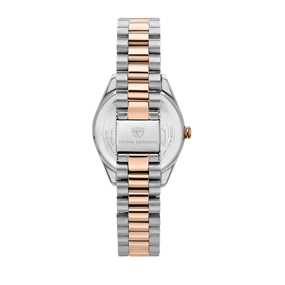 Orologio Donna Chiara Ferragni Everyday Un meraviglioso Orologio firmato Chiara Ferragni che vuole donare al tuo outfit un tocco in più nello stile della fashion blogger più famosa al mondo. Un design unico con una cassa in acciaio delle dimensioni di 32 mm e ghiera di zirconi baguette e cinturino in acciaio bicolore. Il movimento è al quarzo con funzione di solo tempo e resistenza all'acqua di 5 atm. Indossabile nelle diverse occasioni, dal quotidiano all'evento, porta sempre con te il marchio Chiara Ferragni, ormai uno dei brand più influenti al giorno d'oggi. Perfetto come idea regalo!