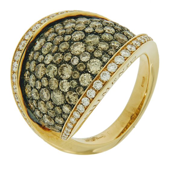 Anello Chimento Lady in oro rosa 18kt con pavé di diamanti brown 2.70ct e contorno di diamanti 0.64ct colore G