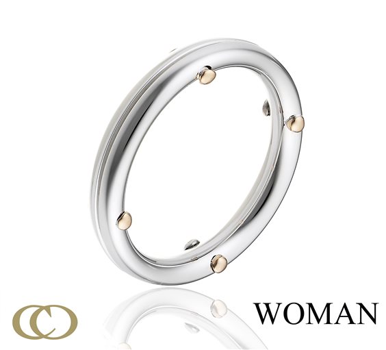 Fede oro bianco 18 Kt con piccoli inserti in oro rosa 18 Kt della linea Fedi di Chimento. La misura disponibile é 14 e può essere usata sia come anello che come fede nuziale.