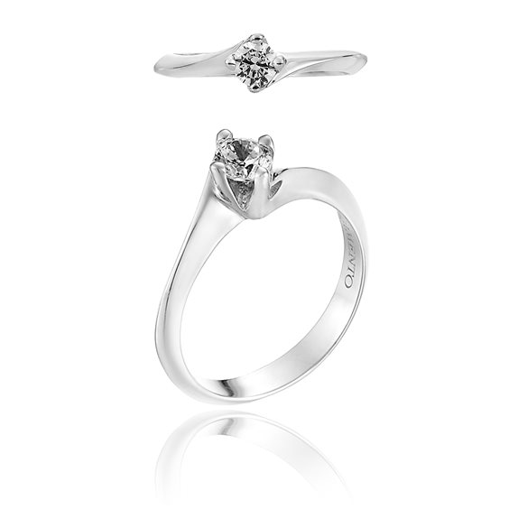 Anello oro bianco 18 Kt, appartenente alla linea Solitari di Chimento, con 1 diamante bianco taglio brillante centrale dalla caratura di 0,30. La taglia disponibile é 14, ma con la possibilità di messa a misura se necessario.