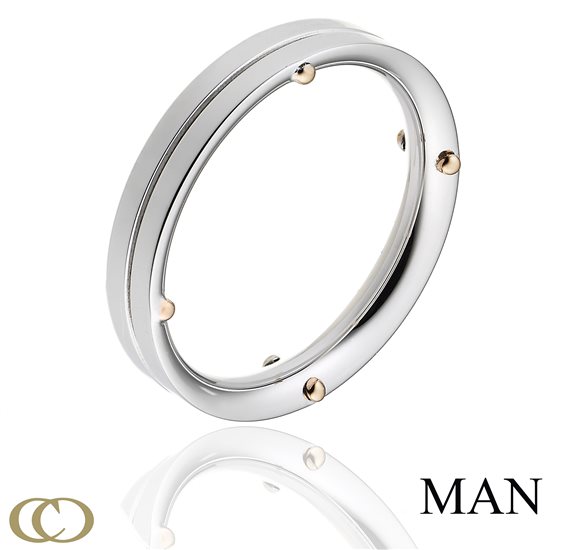 Fede oro bianco 18 Kt con piccoli inserti oro rosa 18 Kt della linea Fedi di Chimento; prodotto che può essere usato come semplice anello o come fede nuziale. La misura disponibile é 20, ma con la possibilità di ordinare qualsiasi misura occorrente.