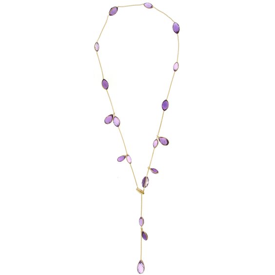 Collana oro giallo 18 Kt della linea Sigilli di Chimento, impreziosita da inserti di Ametista. Lunghezza catena cm 50, ma con la possibilità di agganciare la chiusura in diverse parti della catena (sciarpina).