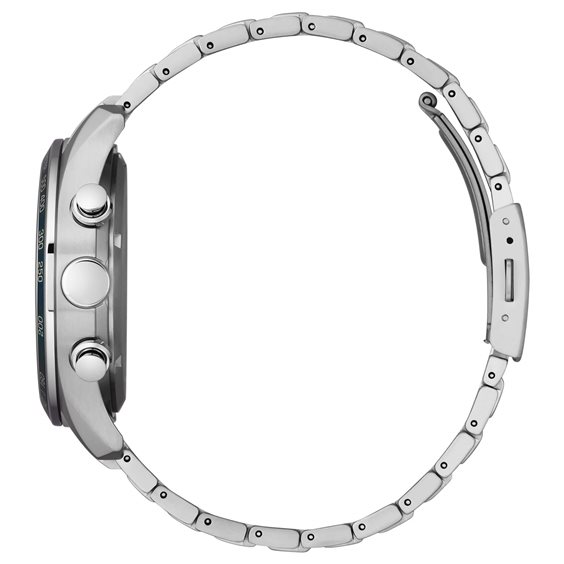 Orologio cronografo da uomo della collezione Super Titanio Sport con cassa in Super Titanio del diametro di 42 mm. ghiera blu con scala tachimetrica , fondo serrato a vite. Quadrante blu con datario e lancette luminose. Vetro zaffiro. Bracciale regolabile in Super Titanio, chiusura deployante con pulsanti. Movimento Eco-Drive ( a carica luce) con riserva di carica di 270 giorni. Cronografo a 1/5 di sec. Impermeabile 10 atmosfere.