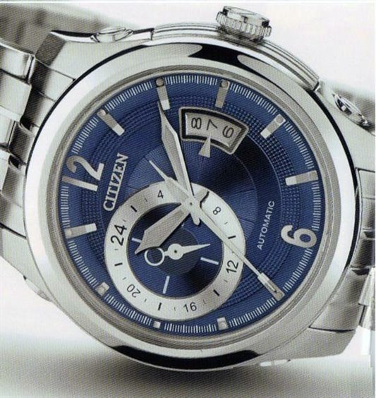 Il nuovo orologio Citizen meccanico nasce dalla passione per la qualità, che spinge al miglioramento delle tecnologie, liberando la creatività. Il nuovo modello calibro 4166 meccanico automatico viene proposto in 6 differenti varianti (3 con bracciale e 3 con cinturino di coccodrillo). La cassa acciaio è fornita di un fondello a vista con vetro zaffiro, che permette di ammirare la platina finemente rifinita a "cote de Geneve",anche attraverso la massa oscillante traforata. Il quadrante dell'orologio ha la visualizzazione del ciclo delle 24 ore, e il calendario con finestra larga, che indica oltre il giorno corrente anche il precedente e il successivo. meccanico Citizen è un orologio con cassa in acciaio e movimento automatico di notevole precisione, la cassa con fondello a oblò è impermeabile 100 metri, il vetro zaffiro e il cinturino bicolore, per questa versione.