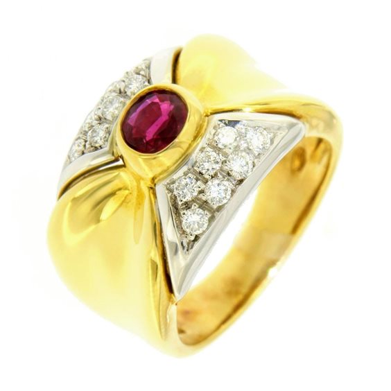 Anello Damiani Vintage in Oro 18k Giallo e Bianco con Rubino Rosso Taglio Ovale 0,66ct e 14 Diamanti 0,40ct 11,1gr SENZA SCATOLA E GARANZIA ORIGINALI