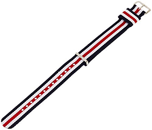 cinturino per orologio unisex daniel wellington, collezione CANTERBURY in nylon nato colore blu/bianco/ROSSO, fibbia in colore ACCIAIO, adattO a qualsiasi orologio dw che usa lo strap 18 mm,