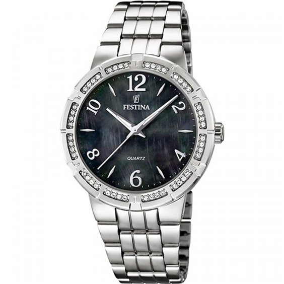 Orologio donna al quarzo, water resistant 50 mt,cassa in acciaio con cristalli, quadrante in madreperla GRIGIO SCURO cinturino in acciaio, apertura con doppio pulsante, cassa chiusa a pressione. Vetro minerale, lancette visibili al buio. L'immagine è indicativa , la confezione può variare di forma e colore.