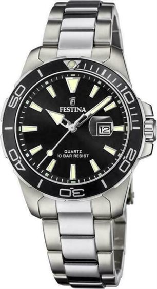 Orologio Festina Ragazzo Solo Tempo in Acciaio con Cinturino in Acciaio Cassa da 35 mm Vetro minerale Quadrante Nero Datario Impermeabilità 10 ATM Ghiera Girevole