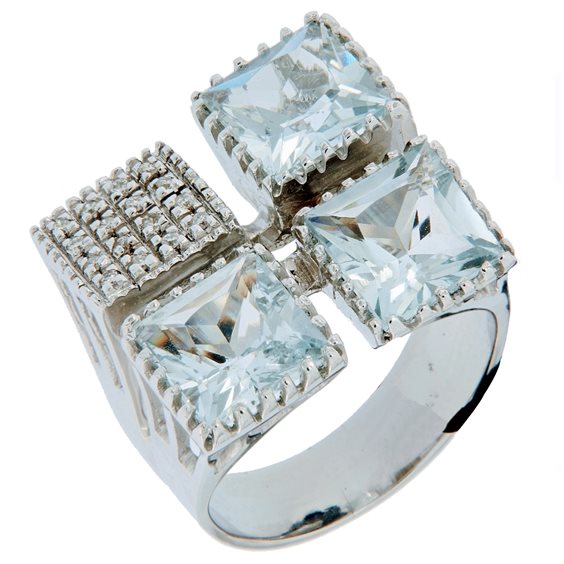 Anello Giampiero Fiorini con 3 Acquamarine 6,70 carati e0,14 carati di diamanti