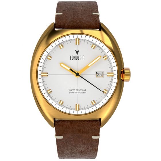 Taliedo, orologio dedicato al quartiere milanese che nel 1910 ospitava uno dei primi aeroporti d’Italia. Dal genio di Giovanni Battista Caproni, conte di Taliedo, è stata presa l’ispirazione per realizzare questo nuovo orologio da polso. Realizzato con una cassa ovale in acciaio dorata, vetro minerale bombato, quadrante bianco opaco con ghiera conta minuti fissa in rilievo, sfere ed indici applicati dorati con Super Luminova, movimento al quarzo giapponese con datario. Orologio dotato di cinturino in pelle di montone colore marrone legno realizzato a mano in Italia con impunture ecrù a contrasto, corona e fondello a vite che permettono una resistenza all’acqua di 50 metri (5ATM).
