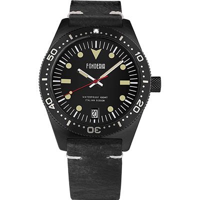 The Captain è un orologio che rappresenta il perfetto connubio tra stile vintage e sportività, è amore per l’avventura, per le sfide impossibili come quelle di tutti i giorni. Questo orologio presenta una cassa in acciaio con trattamento IP Black, un quadrante nero con indici luminescenti invecchiati e ghiera unidirezionale di color nero. Dotato di un cinturino in pelle invecchiata nera realizzato a mano in Italia. Questo orologio Fonderia è resistente all’acqua fino a 100 metri (10 ATM), datario ad ore sei, con corona e fondello a vite, potrà accompagnarti in ogni occasione. Cassa in acciaio con trattamento IP nero, diam. 41 mm; Cinturino in pelle Made in Italy; Corona a vite; Fondello a vite; Movimento al quarzo di precisione Miyota 2415; Vetro plexi bombato; Waterproof 100 m (10atm); Indici Super-LumiNova