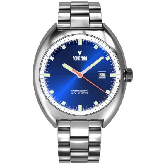 Taliedo, orologio dedicato al quartiere milanese che nel 1910 ospitava uno dei primi aeroporti d’Italia. Dal genio di Giovanni Battista Caproni, conte di Taliedo, è stata presa l’ispirazione per realizzare questo nuovo orologio da polso. Realizzato con una cassa ovale in acciaio, vetro minerale bombato, quadrante blu con effetto sunray e con ghiera conta minuti fissa in rilievo bianca, sfere ed indici applicati di colore argento con Super Luminova, movimento al quarzo giapponese con datario. Orologio dotato di bracciale in acciaio con chiusura deployante, corona e fondello a vite che permettono una resistenza all’acqua di 50 metri (5ATM).