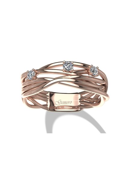 Anello Gemoro Radici in oro rosa 18kt a più fili con 3 diamanti 0,10 F Vs (mis. 16, 4gr) possibilità di messa in misura