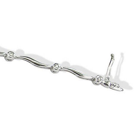 Bracciale oro bianco 18 Kt tipo tennis (oro bianco intervallato da diamanti) impreziosito da diamanti bianchi taglio brillante con caratura 0,10, purezza VS-SI e colore G-H.