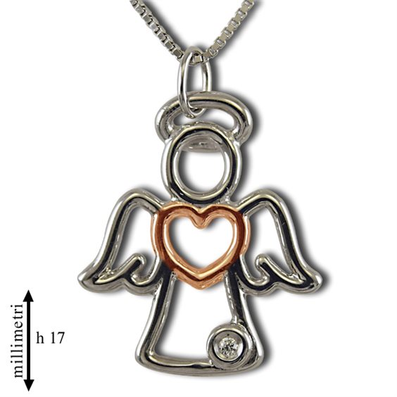 Girocollo in Oro 18kt Bianco e Rosa a Forma di Angelo con Cuore Rosa Diamante 0,005 G Si
