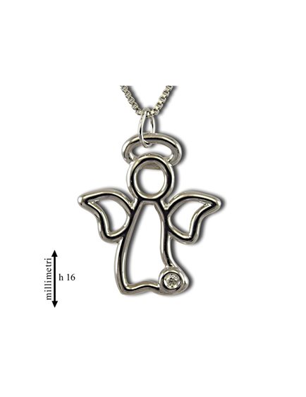 Girocollo in Oro 18kt Bianco a Forma di Angelo diamante 0.005 G Si