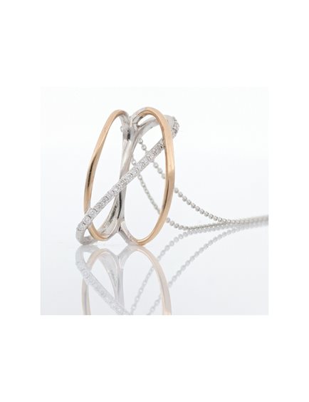 Girocollo con pendente Gemoro della linea Onde in oro bianco e rosa 18kt con diamanti bianchi di caratura 0,115ct (colore H e purezza Si).