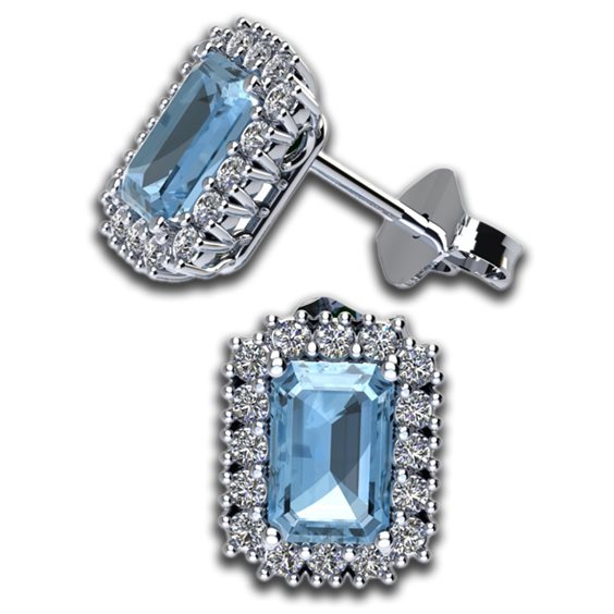 Orecchini lobo Gemoro Acquamarina in oro bianco 18kt con Acquamarina taglio baguette 0,84 (dimensioni 4x6) e contorno di diamanti bianchi con caratura di 0,25 (colore G e purezza Si).