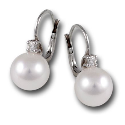 Orecchini Lobo Monachella Oro Bianco Perla Acqua Dolce 8/8,5mm Diamanti 0,07kt H VS