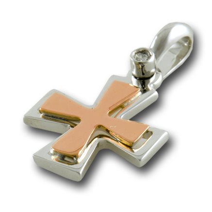 Ciondolo fora CROCE Oro Bianco Oro Rosa Diamante 0,01kt H Si