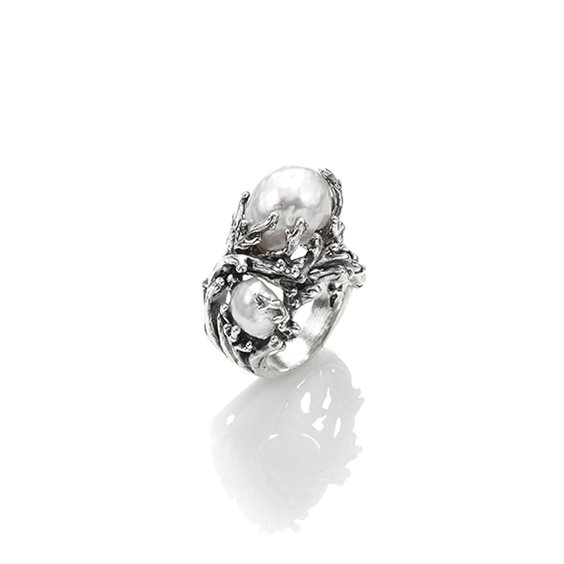Anello in argento 925 e perle naturali. peso 20 gr. fatto a mano in Italia