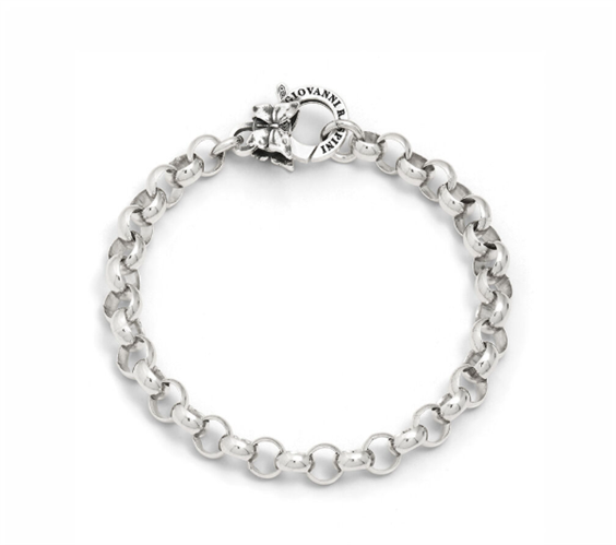 BRACCIALE ROLO' CHIUSURA FARFALLE. Questo raffinato bracciale in argento brunito si distingue per la sua pregiata lavorazione artigianale. Il motivo farfalla, un evergreen della Maison Giovanni Raspini, in versione double face con funzione di chiusura-decoro, impreziosisce il design, combinandosi armoniosamente con la catena a maglia ovale in argento. Realizzato a mano in azienda.