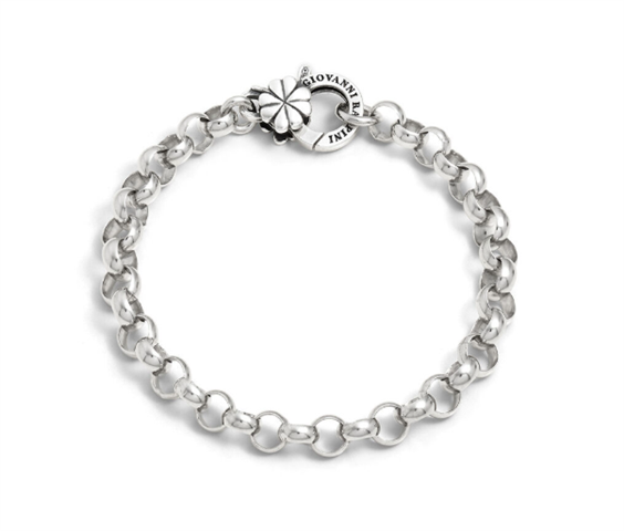 Questo raffinato bracciale in argento brunito si distingue per la sua pregiata lavorazione artigianale. Il motivo Quadrifoglio, un evergreen della Maison Giovanni Raspini, in versione double face con funzione di chiusura-decoro, impreziosisce il design, combinandosi armoniosamente con la catena a maglia ovale in argento. Realizzato a mano in azienda.