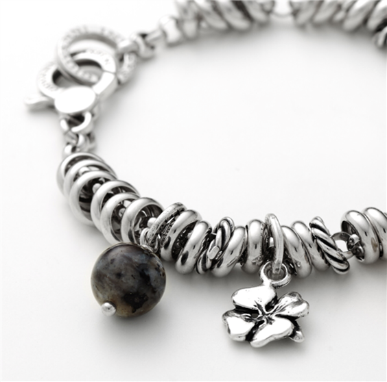 Charm Quadrifoglio. Ogni foglia rappresenta qualcosa: la prima è per la speranza, la seconda per la fede, la terza per l'amore e, ovviamente, la quarta simboleggia la fortuna. Altezza cm.2 (esclusa maglina di cm.0,90).