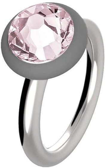 Anello tipo solitario con pietra rosa e contorno silicone color Grigio. Misura M (14)