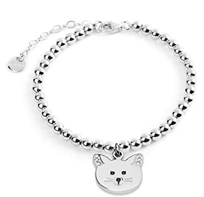 bracciale catena a pallini con charm pendente a forma di muso di gattino. Il bracciale è regolabile in lunghezza mediante catenella finale per un'ottima vestibilità da 16 a 19 cm Il charm è accuratamente rifinito nei dettagli con smalto nero e piccoli zirconi bianchi sulle orecchie.
