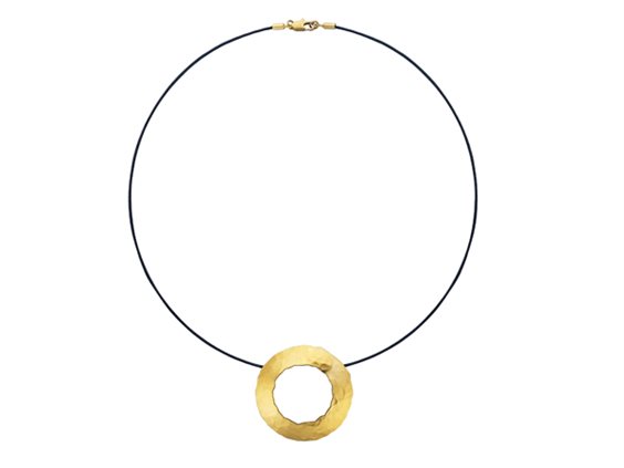 Girocollo Cuoio Metallo Dorato Cerchio Martellato