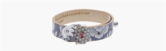 Bracciale in vera pelle stampata con passante in pelle con charms argento 925 e punto luce Swarovski original e bottone in madreperla laserato con filo colorato. Scatola personalizzata completa di pieghevole all'interno.