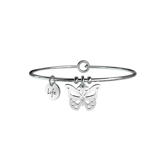 Bracciale Kidult in acciaio ipoallergenico con ciondolo a forma di farfalla. "Ali leggere accarezzate dal vento, spirito libero che danza nel cielo con i colori dell'arcobaleno. Per lei ogni secondo vale come un giorno. Ti ricorderà di vivere intensamente ogni singolo momento!"