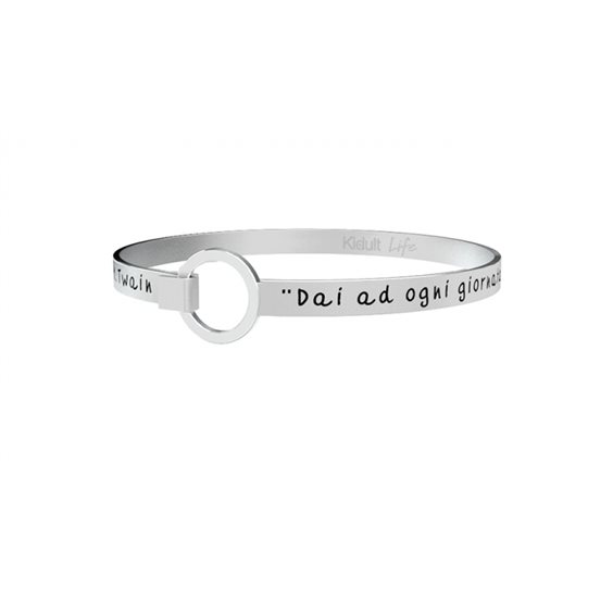 Bangle Kidult in acciaio 316L satinato.Incisione smaltataChiusura tondaMisura unica, diametro 6 cm