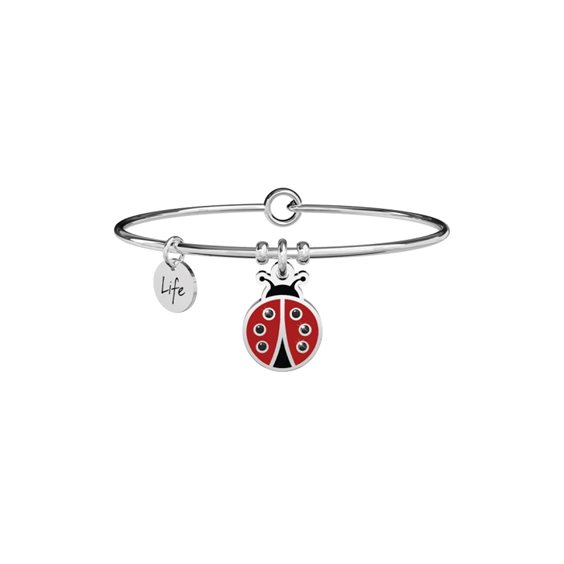 Bangle Kidultin acciaio 316L con ciondolo Coccinella.Incisione e cristalli sul ciondoloChiusura tondaMisura unica, diametro 6 cm